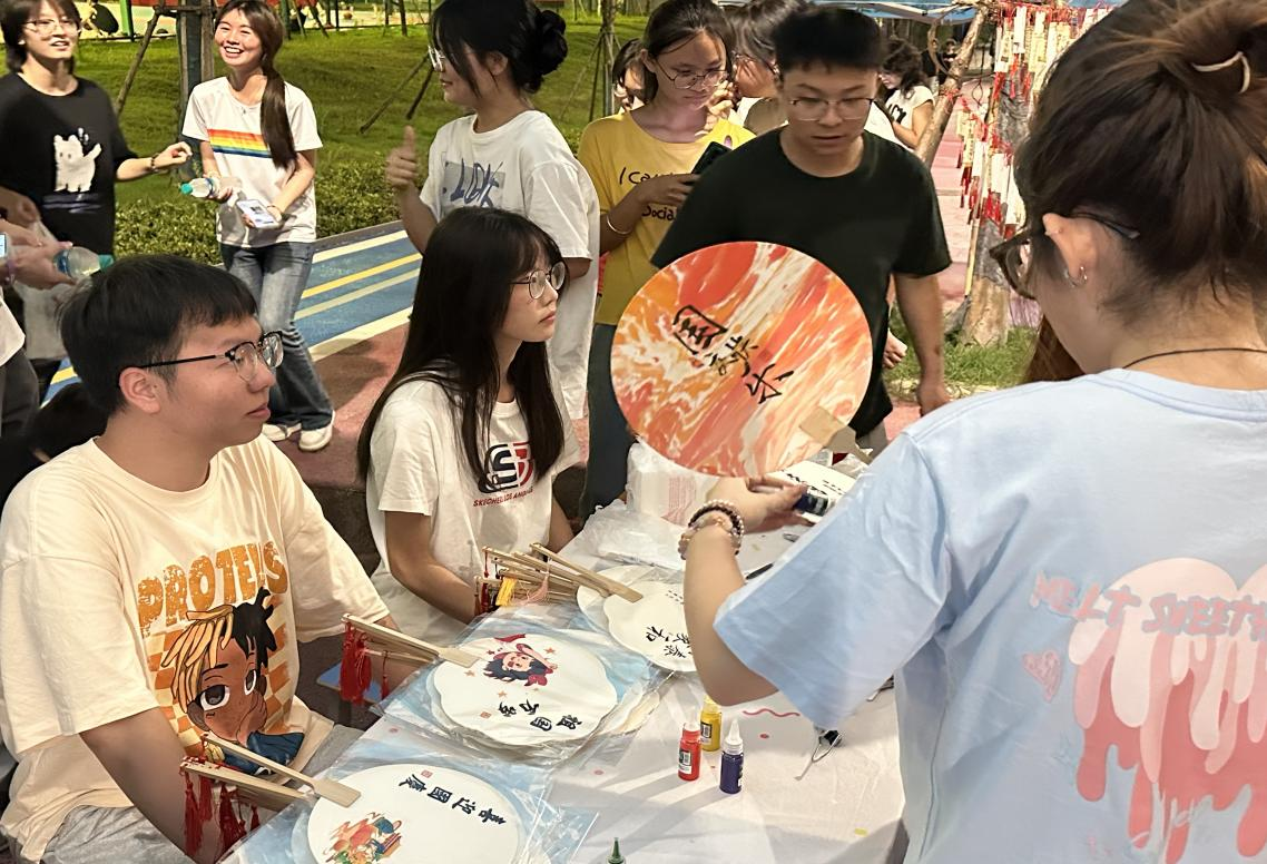 活动现场专门设置了漆扇制作体验区,同学们在工作人员的指导下,动手制作属于自己的漆扇。大家小心翼翼地描绘着图案,感受着大漆与扇面的奇妙融合。一位参与体验的同学表示:“在国庆假期能够参与这样的活动,不仅让我了解了漆扇这一非遗文化,还亲手制作了一份特别的礼物,非常有意义。”