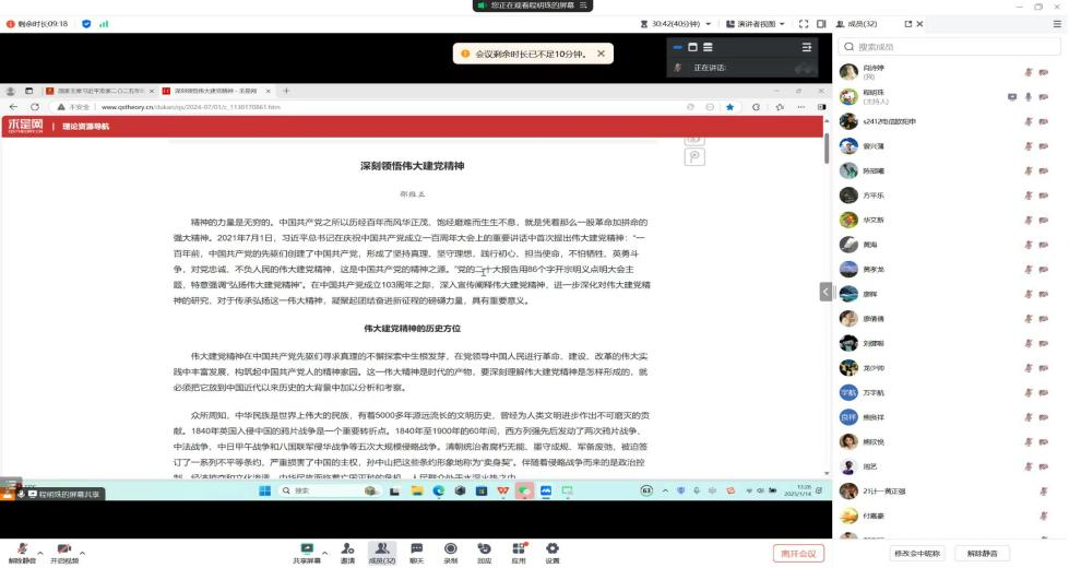 为持续深入学习贯彻习近平新时代中国特色社会主义思想,弘扬伟大建党精神,使全体党员更加自觉地学习党章、遵守党章、贯彻党章、维护党章,williamhill威廉希尔中文网站第二党支部于2025年1月14日,在腾讯会议组织召开了“学思践悟新思想 踔厉奋发启新程”主题党日活动。支部全体党员参加了此次会议,会议由党支部书记程明珠主持。