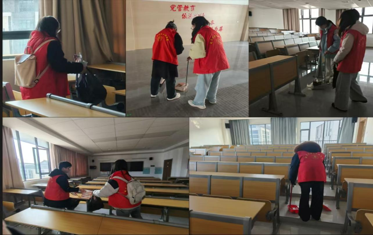 活动现场,身着红色马甲的志愿者们手持清洁工具,化身“校园美容师”,对沁苑一、三实及沁苑二教A、B座展开全方位清洁。从课桌精细擦拭到地面彻底清扫,从黑板粉尘清除到窗户透亮如新,志愿者们以汗水为笔墨,在春日校园绘就文明画卷。焕然一新的教学环境,成为雷锋精神的生动注脚。