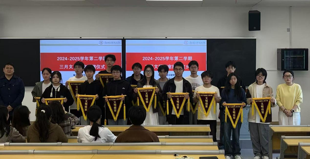 经过激烈的角逐,最终评选出15名优秀寝室。3月25日,文明宿舍授旗仪式在沁苑二教B座209召开,学院党总支书记江建华为优秀寝室授旗。会上,江建华对同学们的努力表示肯定,鼓励大家继续保持良好习惯,发挥榜样作用,带动更多寝室加入文明建设,共同营造和谐校园环境。
