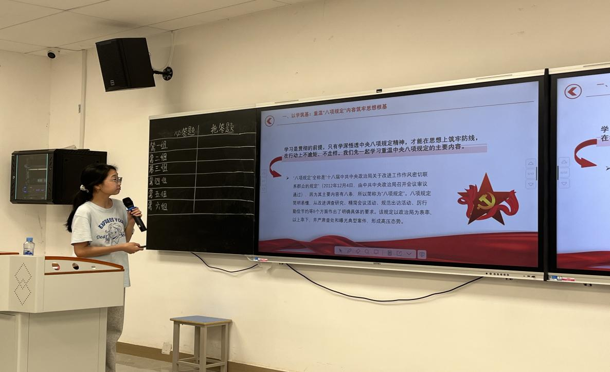 为深入贯彻中央八项规定精神学习教育,强化师生纪律意识,筑牢拒腐防变的思想防线,传承红色基因,弘扬廉洁文化,促进党团融合发展。williamhill威廉希尔中文网站党总支于5月14日在沁苑2教A座109教室举办“严守中央八项规定精神 弘扬清风正气”为主题的党团知识竞赛,“集芯成路”和“红星闪耀”红色班级学生参加此次活动。