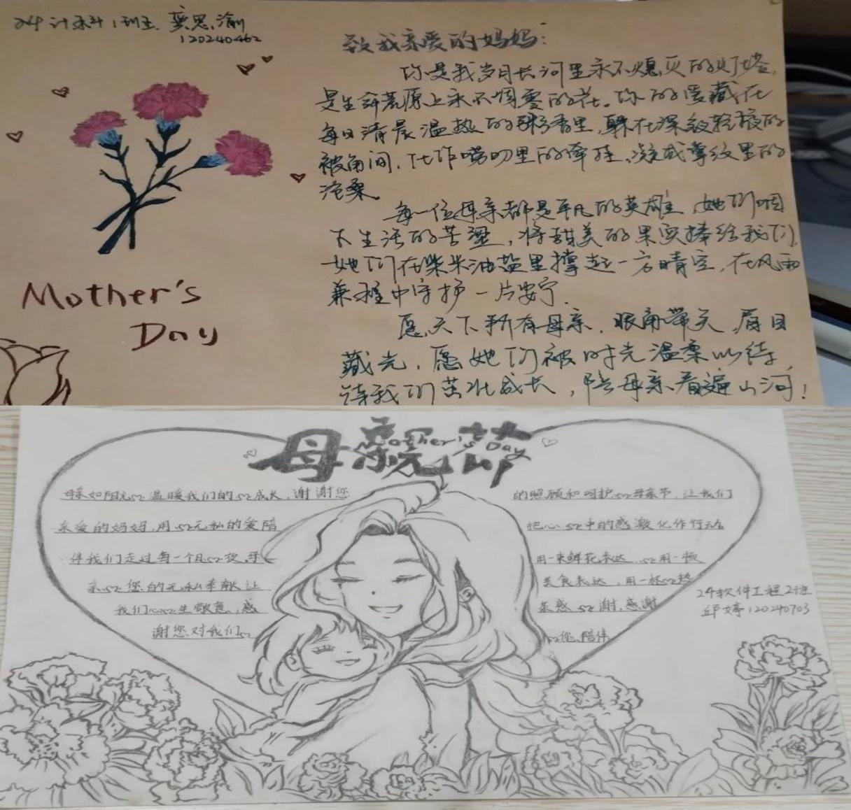 活动期间,同学们积极踊跃,提交的作品创意十足、情感真挚,既有对母亲日常付出的细腻感恩,也有对母爱无私的崇高礼赞。这次活动不仅是情感表达,更是一堂生动的感恩教育课。