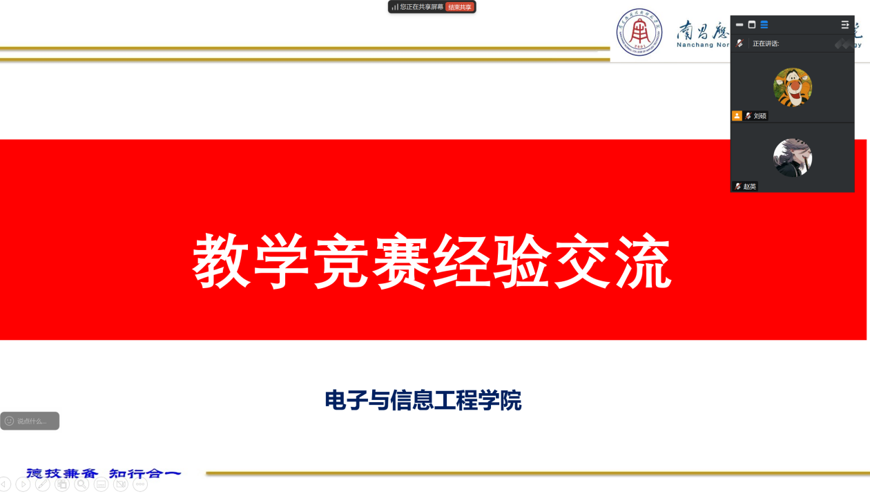 为深化专业教学改革,推动课程创新与教师能力提升,2025年5月27日下午两点,williamhill威廉希尔中文网站数字媒体技术系通过线上平台召开教学竞赛经验交流会。教研室刘硕、王慧颖、赵英等骨干教师参会,围绕教学竞赛设计、课程思政融合及产教融合实践展开深度研讨。
