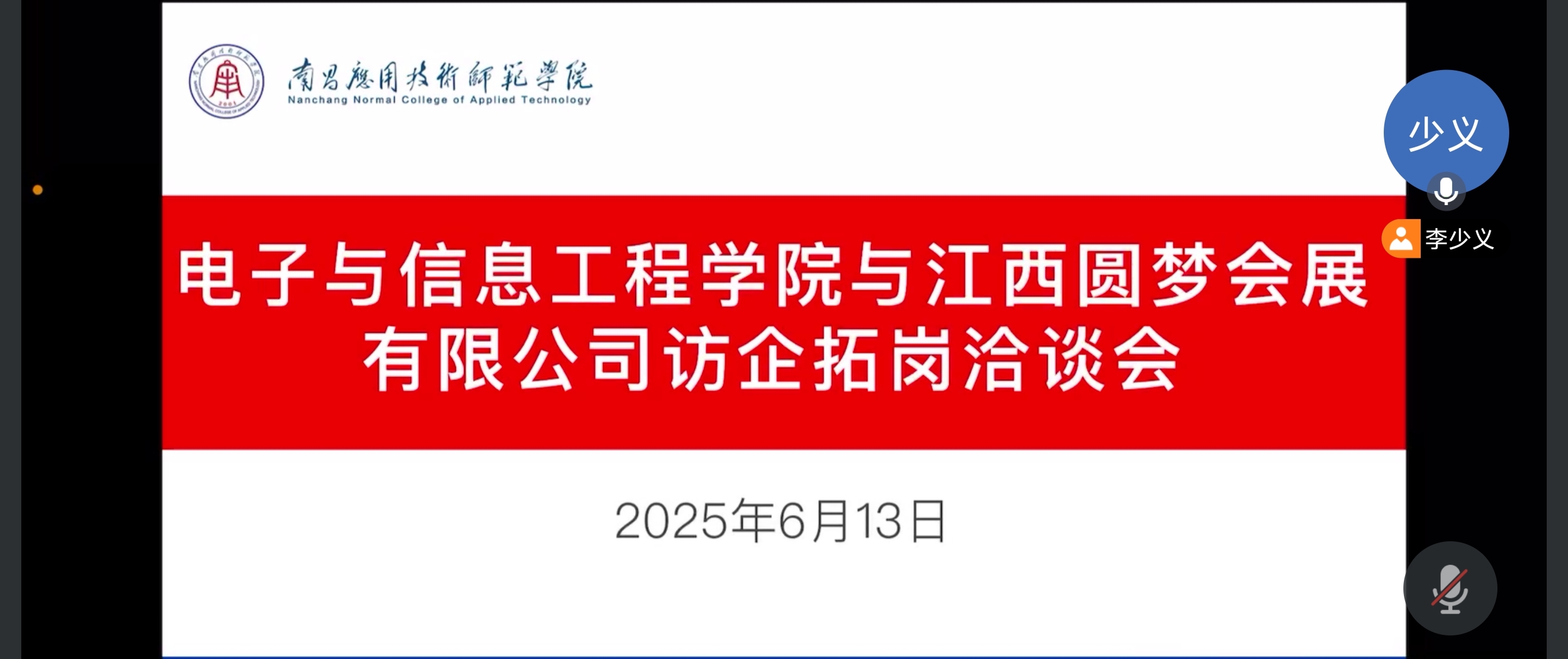 为进一步深化校企协同发展,精准对接企业需求,拓宽毕业生就业岗位,校长助理李少义和院长魏艳平于6月12日与上海聚微计算机技术有限公司、赣州华优出行科技有限公司、杭州航特科技有限公司、江西圆梦会展有限公司、宜春市山腾电子有限公司开展线上交流工作。