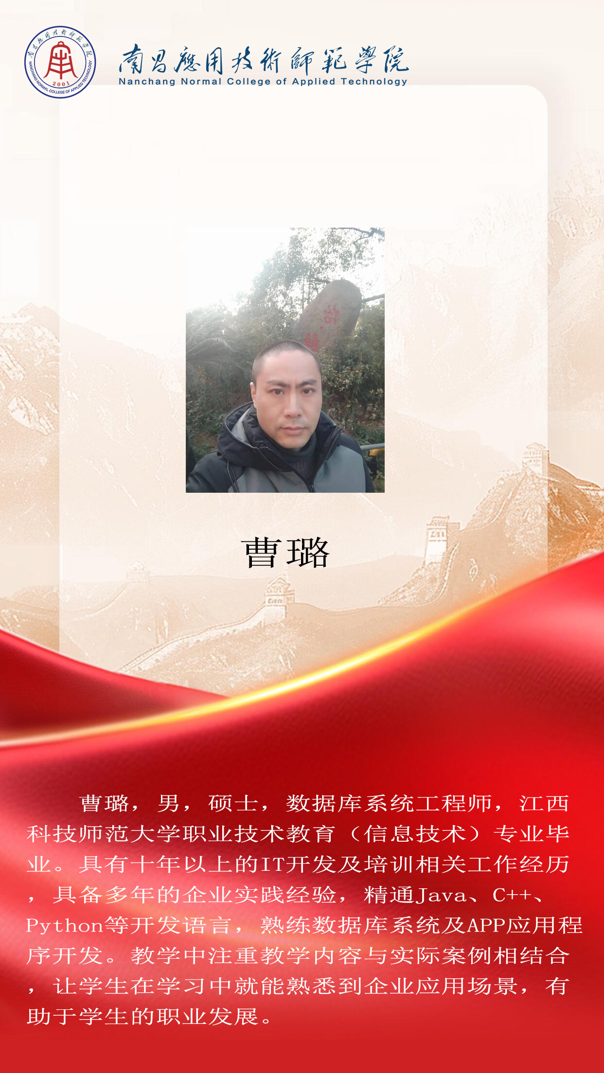 先进典型 优秀毕业生 优秀学生风采 优秀教职工 您现在的位置是:首页 > 先进典型 > 优秀教职工 曹璐 计算机系主任 管理员2025-06-161141 上一篇 曹海 副教授 下一篇 张扬 工程技术系主任