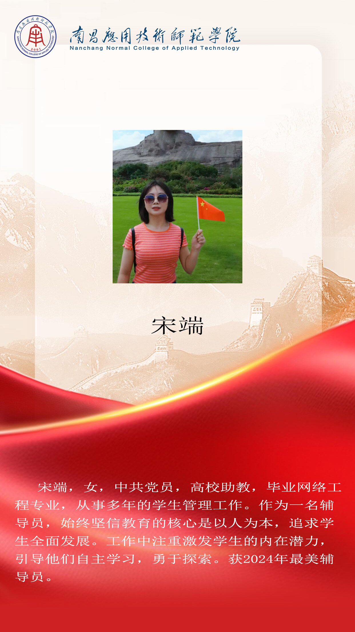 先进典型 优秀毕业生 优秀学生风采 优秀教职工 您现在的位置是:首页 > 先进典型 > 优秀教职工 宋端 最美辅导员 管理员2025-06-161161 上一篇 龙少帅 先进工作者 下一篇 张扬 工程技术系主任