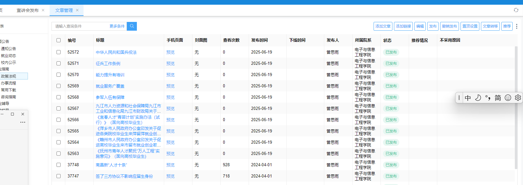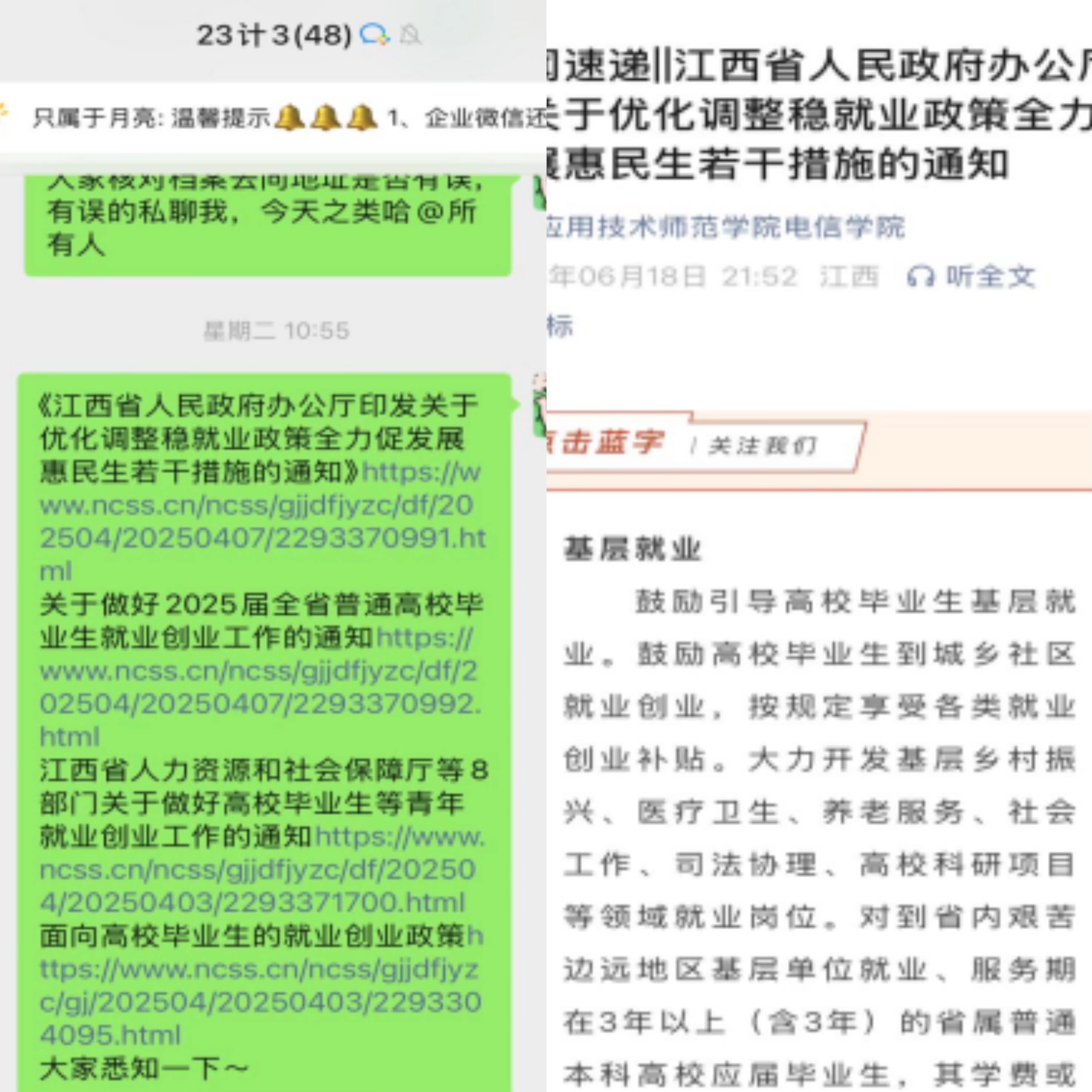 williamhill威廉希尔中文网站积极响应江西省就业创业政策号召,多措并举推进政策宣传与落实工作。学院通过毕业生班级群精准推送政策文件及解读,确保每位毕业生及时获取就业补贴、创业扶持、基层就业优惠等关键信息,实时解答学生疑问;利用学院官微、官网发布图文并茂的政策解读文章及视频,扩大政策知晓面。