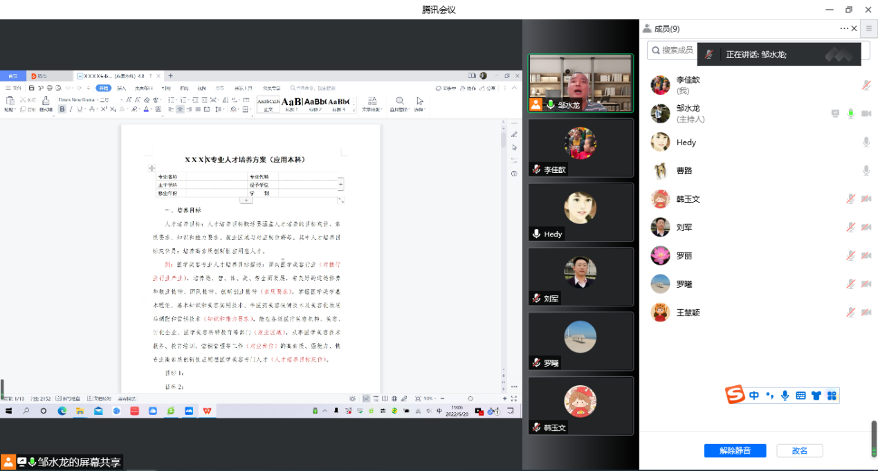 为扎实做好2022版人才培养方案修订工作,6月20日晚,williamhill威廉希尔中文网站利用腾讯会议,召开2022版人才培养方案修订线上研讨会,学院教学管理人员、各专业负责人参加了此次会议,会议由院长邹水龙主持。