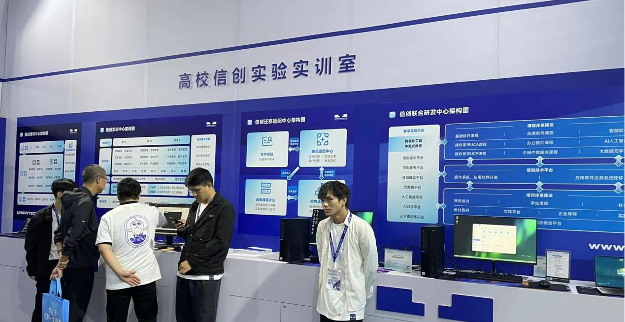 会后,参会人员进入展厅进行参观,并与参展单位进行交流,展示会重点展示了数字技术和人工智能在教育装备领域的新应用、新成果、新产品和新的整体解决方案。