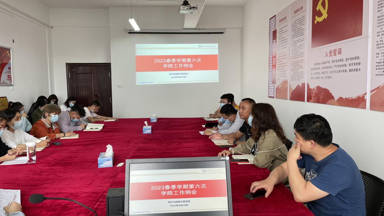5月10日,学院在会议室1407召开2023春季学期第六次工作例会,全体教职工参加了会议,会议由院长邹水龙主持。