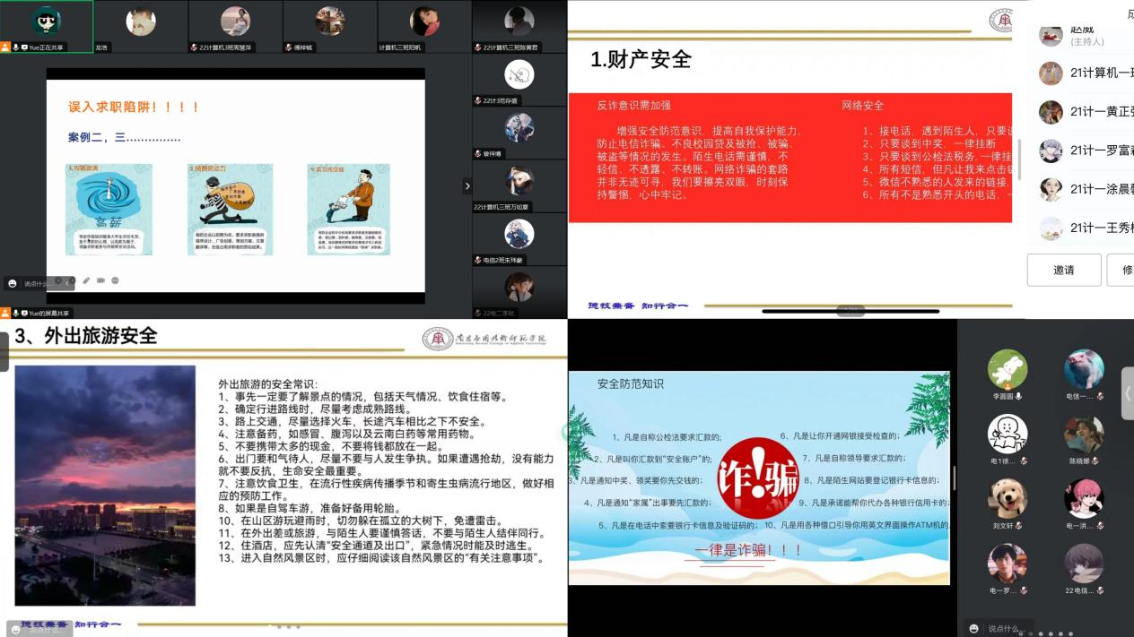 此次线上安全教育主题班会的召开,不仅让同学们学习到应对突发事故的安全知识和方法,进一步树立“安全第一”的观念;同时,增强了学生们的自我保护意识和能力,引导学生们提高安全意识、树立底线思维,确保学生们度过一个安全、愉快、充实的暑假。希望同学们时刻把“珍爱生命、安全第一”八个字牢记在心,平平安安过暑假,快快乐乐返校来!