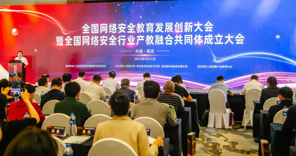 9月24日,全国网络安全行业产教融合共同体成立大会在南京隆重举行,大会开幕式由常州信息职业技术学院副校长朱敏、东南大学网络空间安全学院副院长陈立全主持,威廉希尔官网党总支书记、执行院长江建华出席大会。此次大会由工业和信息化部教育与考试中心指导,东南大学、常州信息职业技术学院、深信服科技股份有限公司联合主办,深信服产业教育中心承办。