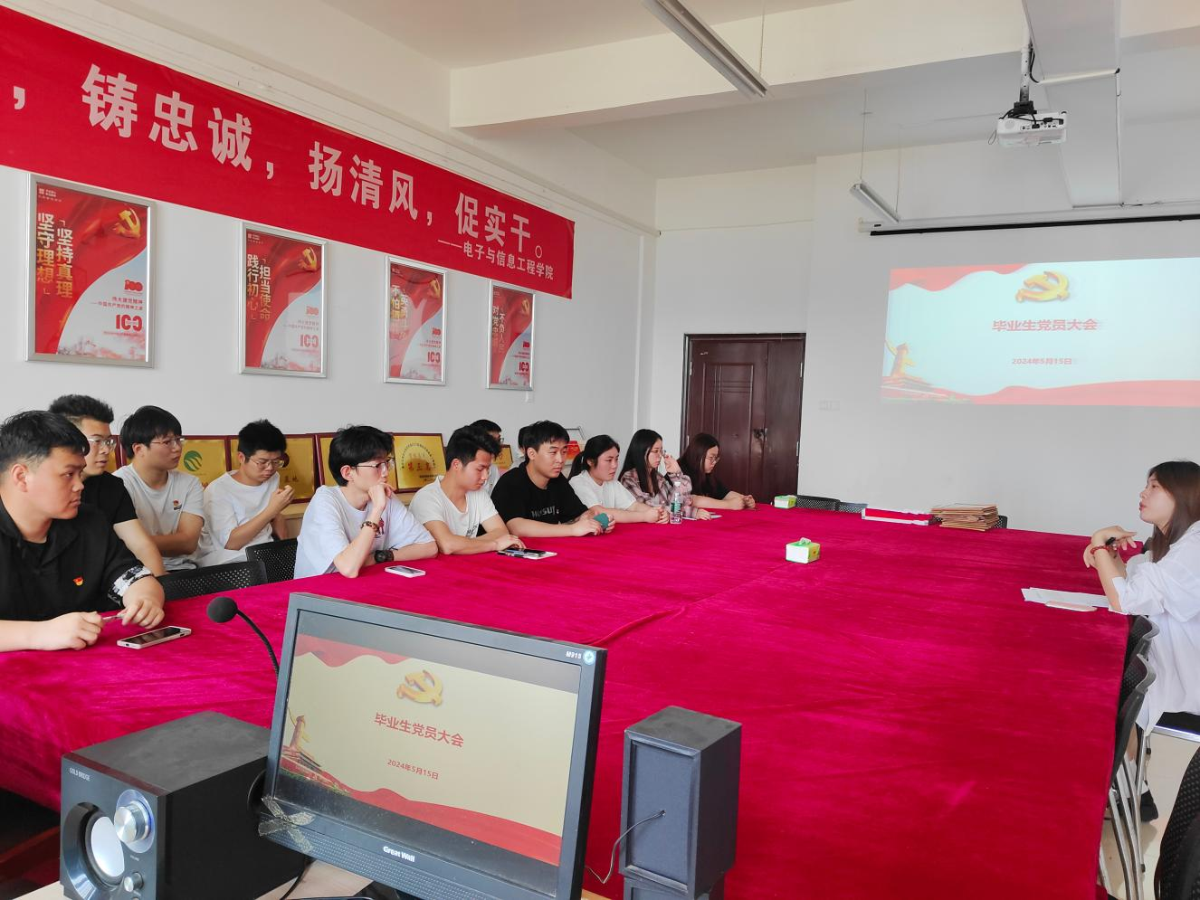程明珠向毕业生党员提出了三点殷切希望:一是站好最后一班岗,在即将离开学校的最后阶段,以实际行动践行党员的先锋模范作用,同时积极和学院党组织联系,及时办理好党组织关系转接手续;二是希望全体毕业生党员牢记党员身份,强化责任担当,步入社会后要继续保持与党组织的紧密联系积极参加党组织的各项活动,不断提高自身党性修养,为党的事业贡献力量;三是树立终身学习理念,不断提升个人能力和素养,不断更新知识体系、拓宽视野,以适应新时代新要求!