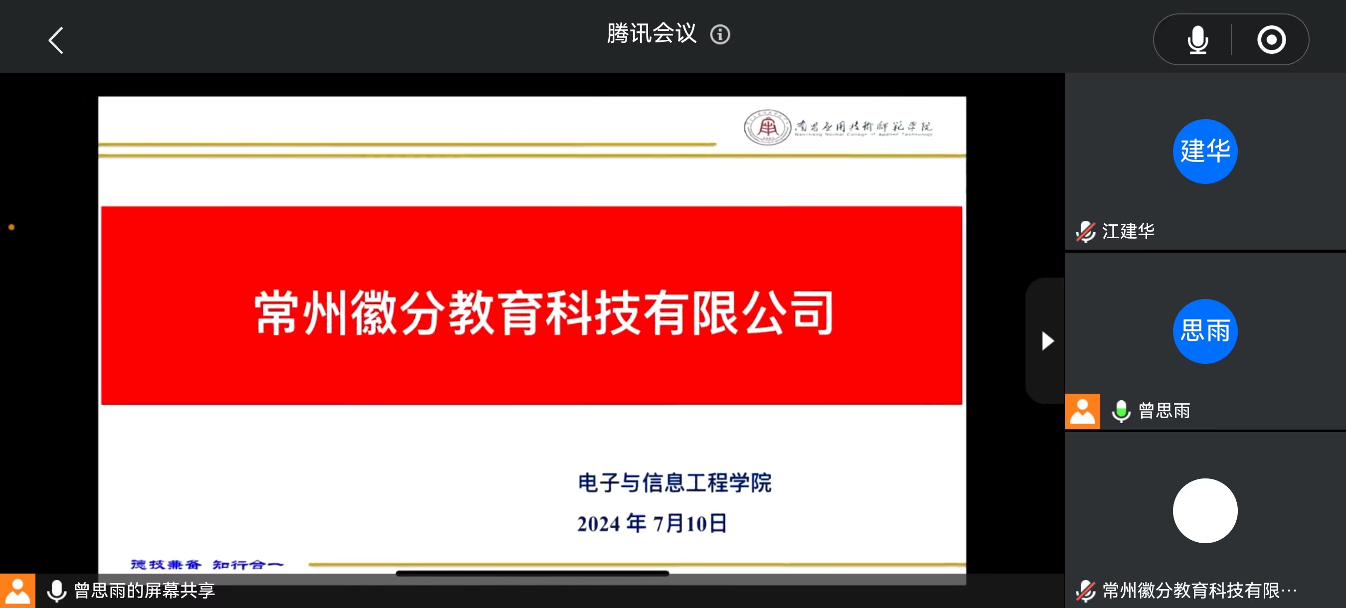 为进一步落实学校访企拓岗就业专项行动,全面深化校企合作、供需对接,推进我校毕业生多维度,高质量就业。7月10日,williamhill威廉希尔中文网站党总支书记江建华和就业专员曾思雨与常州微分教育科技有限公司、南京春未科技有限公司开展线上访企拓岗。