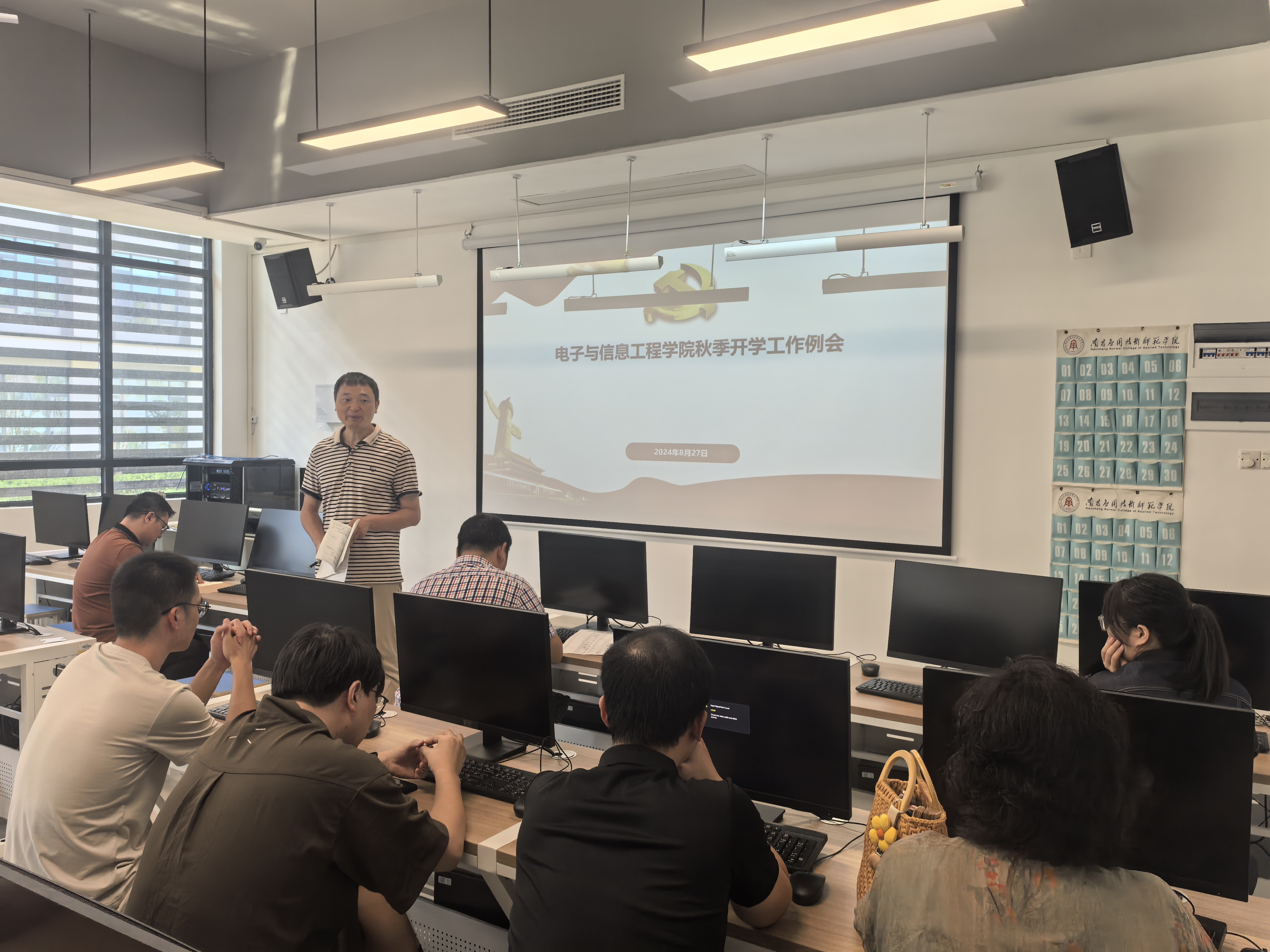 涂斌副院长对新学期初教学准备工作做了具体安排,并强调开课前学院将会组织一次自查,要求各系提前督促老师们做好开学前各项教学材料的准备及教学环境熟悉,确保第一课顺利开课。