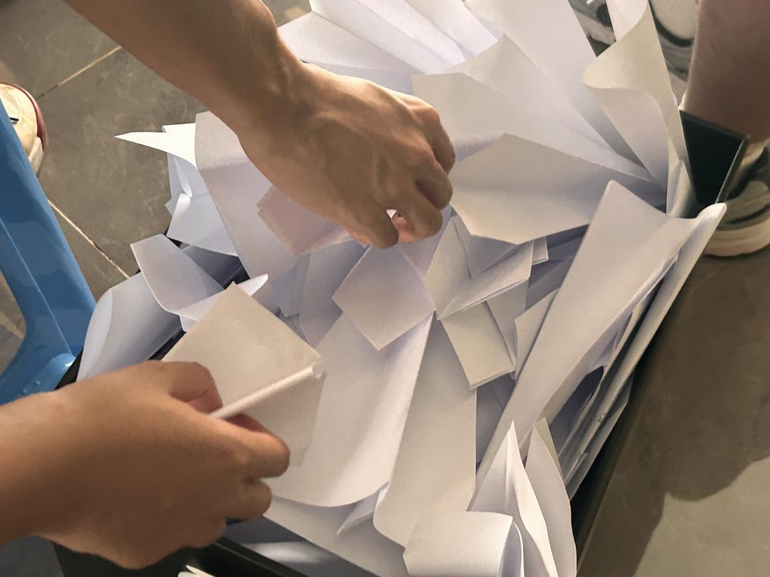 活动安排新颖有趣,参与人员积极地到活动摆摊处填写个人信息以及领取纸张,并且加入活动群。同学们在纸上写下了最近发生的愉快或苦闷的事情,将写满心声的纸张叠成纸飞机,投入纸箱中。随后,他们可以随机抽取一个纸箱里的纸飞机并展开阅读,对纸飞机上的内容进行回复建议和意见,并重新放回纸箱。