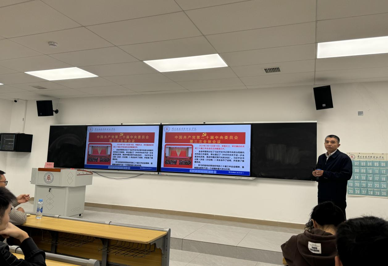 为全面深入学习习近平新时代中国特色社会主义思想和党的二十届三中全会精神,深刻理解和准确把握全会精神的核心要义和丰富内涵,10月23日上午,马克思主义学院副院长、副教授刘德彰在沁苑2教A座109为威廉希尔官网师生做学习贯彻党的二十届三中全会精神专题宣讲,学院领导班子及师生代表共110余人参加宣讲报告学习。