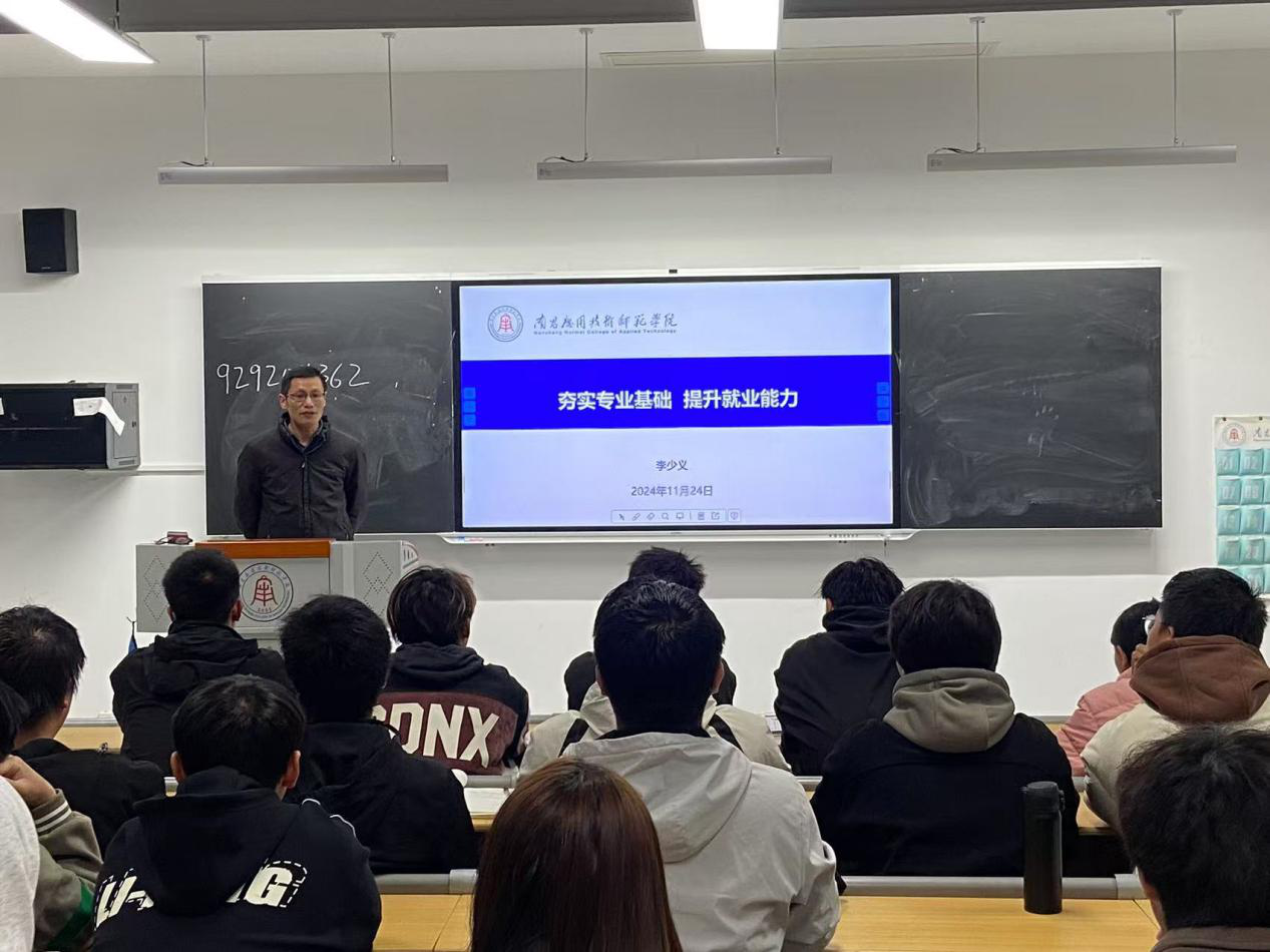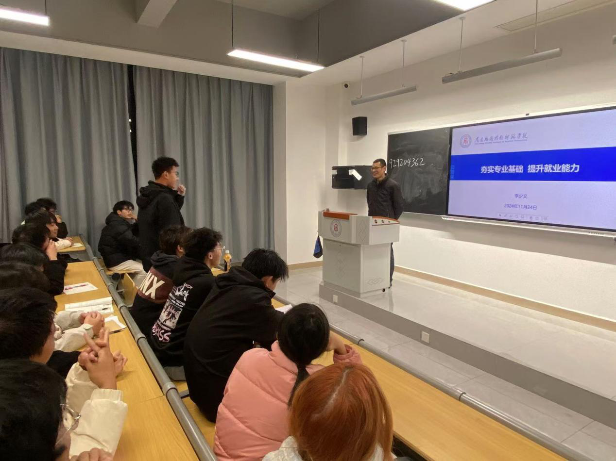 为帮助同学们深入了解当前就业形势,树立正确的就业观,11月24日,校长助理李少义深入williamhill威廉希尔中文网站,以《夯实专业基础 提升就业能力》为题,为学院2024级电子信息工程专业新生开展专题讲座。