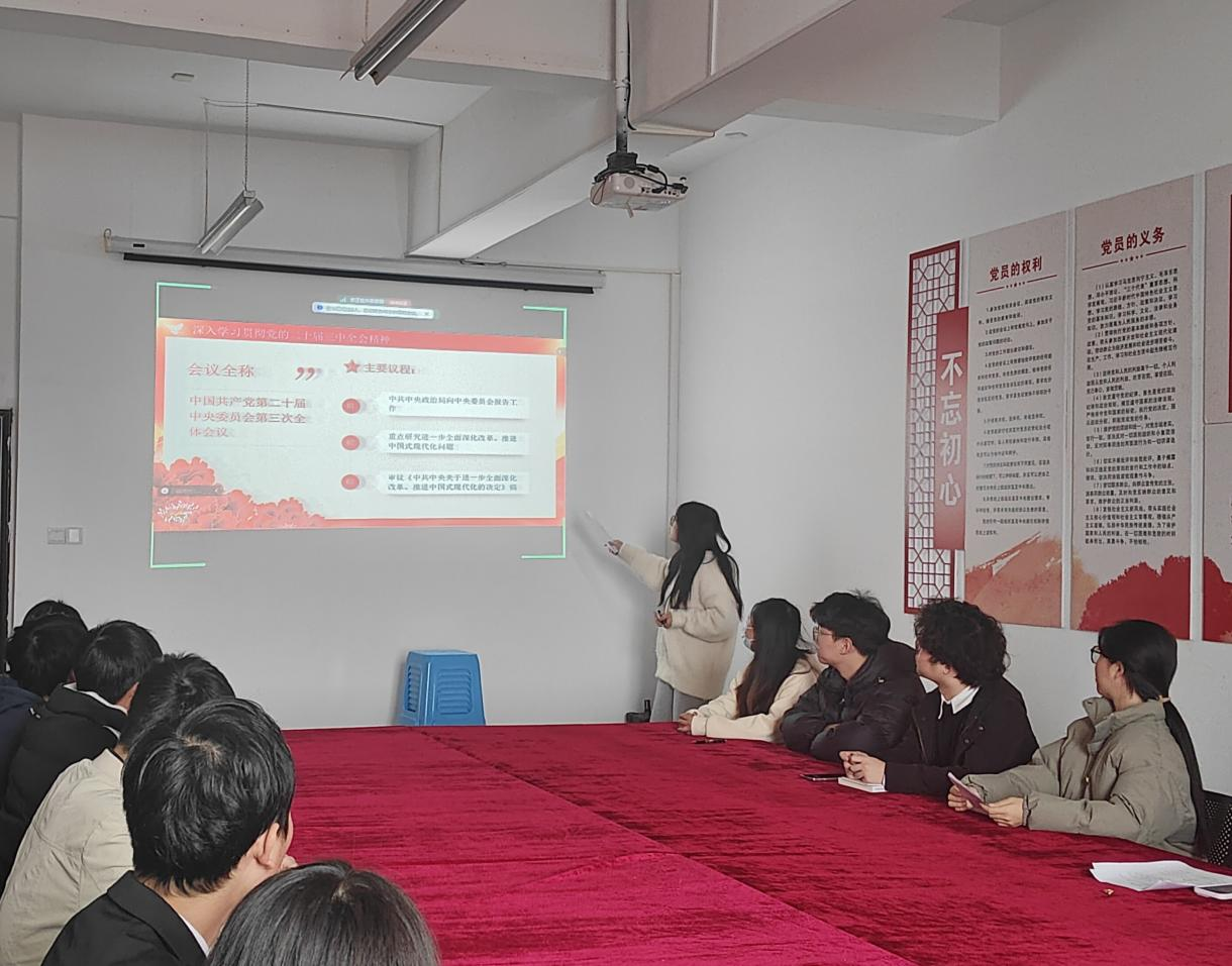 为深入学习贯彻党的二十届三中全会精神,引领党员进一步深入学习和理解全面深化改革的战略部署转化为推进中国式现代化的强大力量,12月6日,学院第二党支部书记程明珠为全体党员讲授了一堂以“深入学习贯彻党的二十届三中全会精神”为主题的专题党课。
