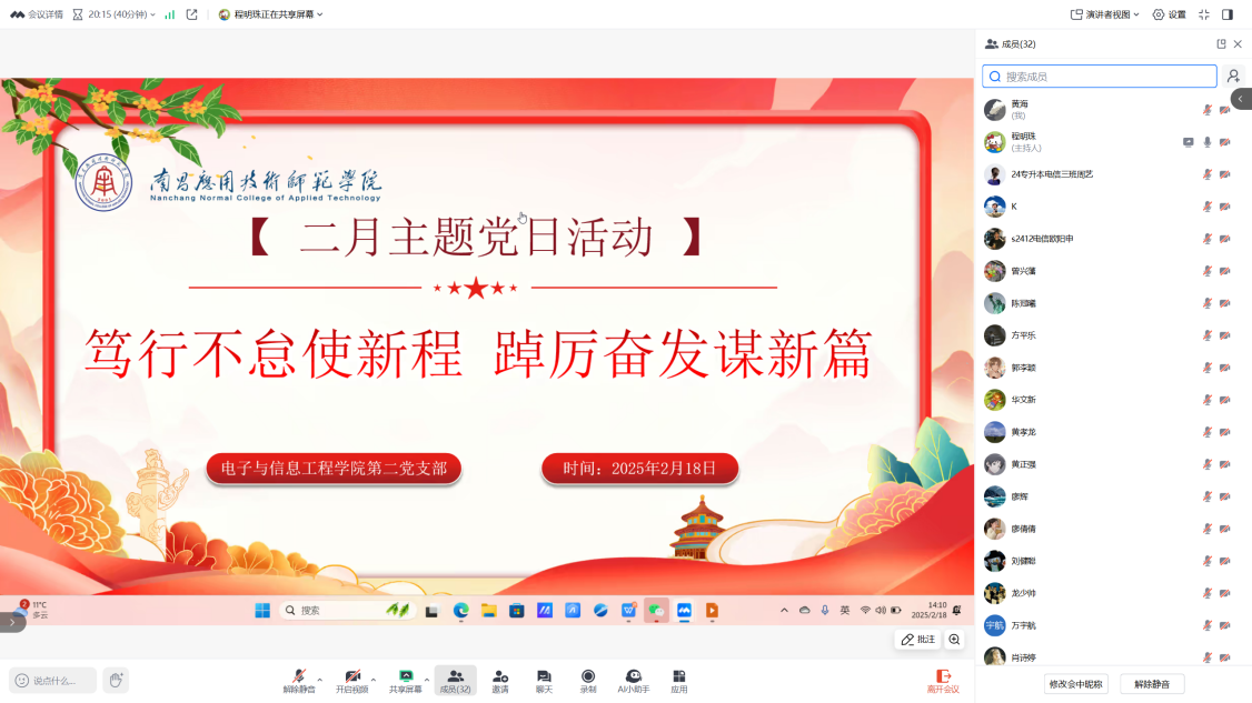 为深入学习习近平新时代中国特色社会主义思想和习近平总书记重要讲话精神,激励党员始终以榜样为标杆,提升服务意识,发挥先锋模范作用,williamhill威廉希尔中文网站第二党支部于2月18日在腾讯会议组织开展“笃行不怠使新程,踔厉奋发谱新篇”主题党日活动。