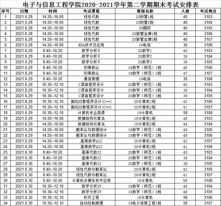 首页栏目 学院新闻 学院公告 学生工作 您现在的位置是:首页 > 首页栏目 > 学院公告 学院2020-2021-2期末考试安排 管理员2021-06-211509 上一篇 关于确定李毅等22位同志为发展对象的公示 下一篇 电信学院关于评选2025-2026学年第一学期“优秀学生干部”、“优秀工作者”、“文明寝室”、“先进班集体”获奖名单公示
