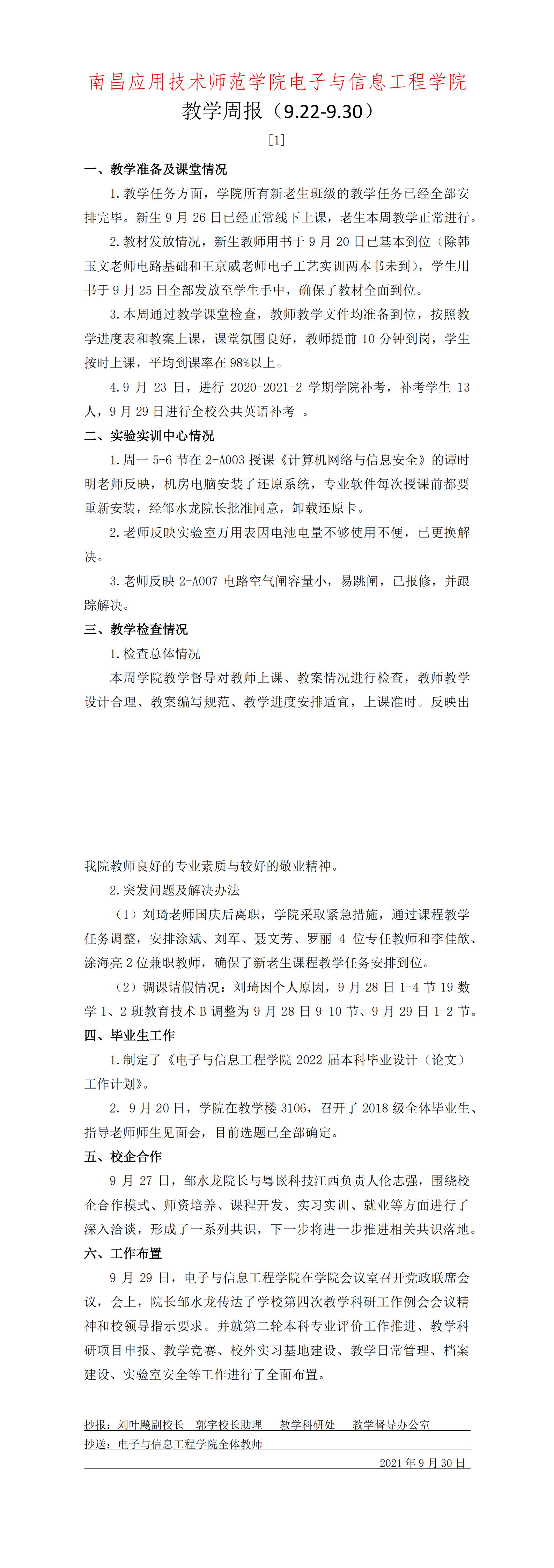 首页栏目 学院新闻 学院公告 学生工作 您现在的位置是:首页 > 首页栏目 > 学院公告 学院教学周报【1】号 管理员2021-09-30986 上一篇 关于2021年中秋节、国庆节放假安排的通知 下一篇 电信学院关于评选2025-2026学年第一学期“优秀学生干部”、“优秀工作者”、“文明寝室”、“先进班集体”获奖名单公示