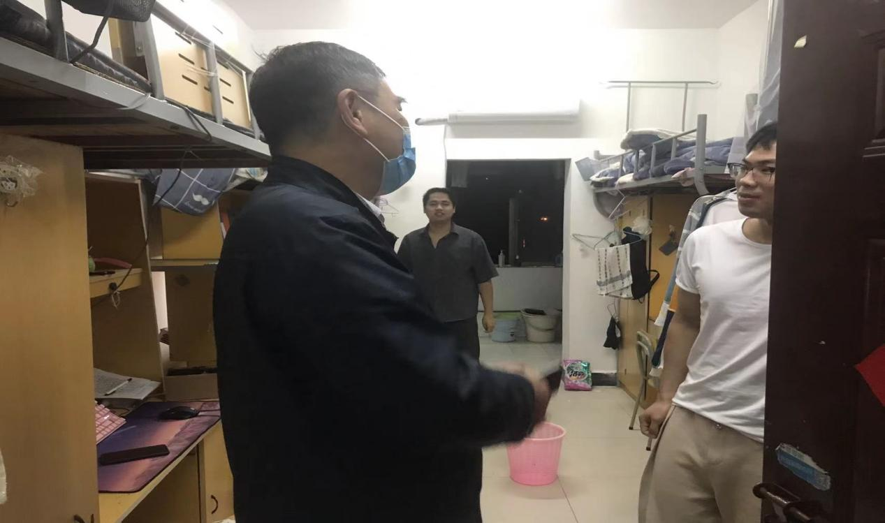 关怀入寝室,温情暖人心。为贯彻学校疫情防控要求,切实了解学生在疫情封闭期间的生活与学习情况,4月20日晚18点30分至19点20分,校领导郭宇带领学工处处长周林旺、副处长洪明、校团委副书记叶超、电子与信息工程学院党总支书记龙犇、学工处相关负责人以及威廉希尔官网各班辅导员深入学生寝室,走访慰问学生。