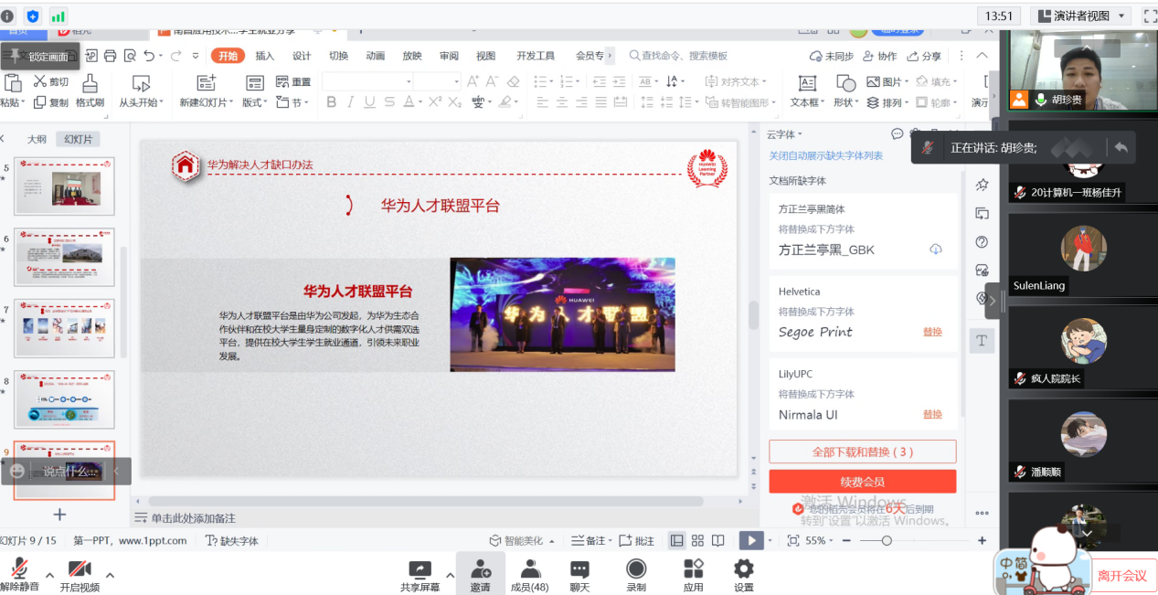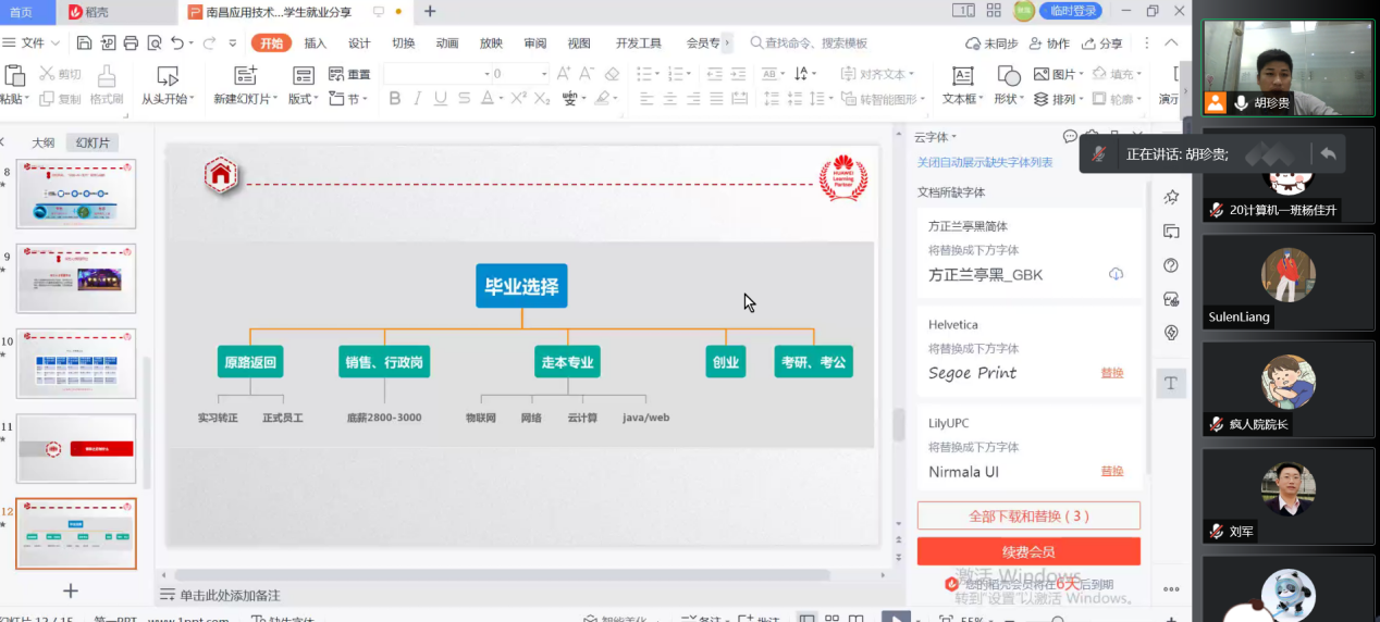 4月27日,华为ICT学院百校行活动—williamhill威廉希尔中文网站毕业生就业分享会顺利举行。因疫情防控需要,分享会线上举行,由合肥宝德网络江西分公司高级院校经理胡珍贵主持。学院院长邹水龙、软件工程教研室主任刘军、各班级辅导员以及18、19级学生共计60余人参加了此次分享会。