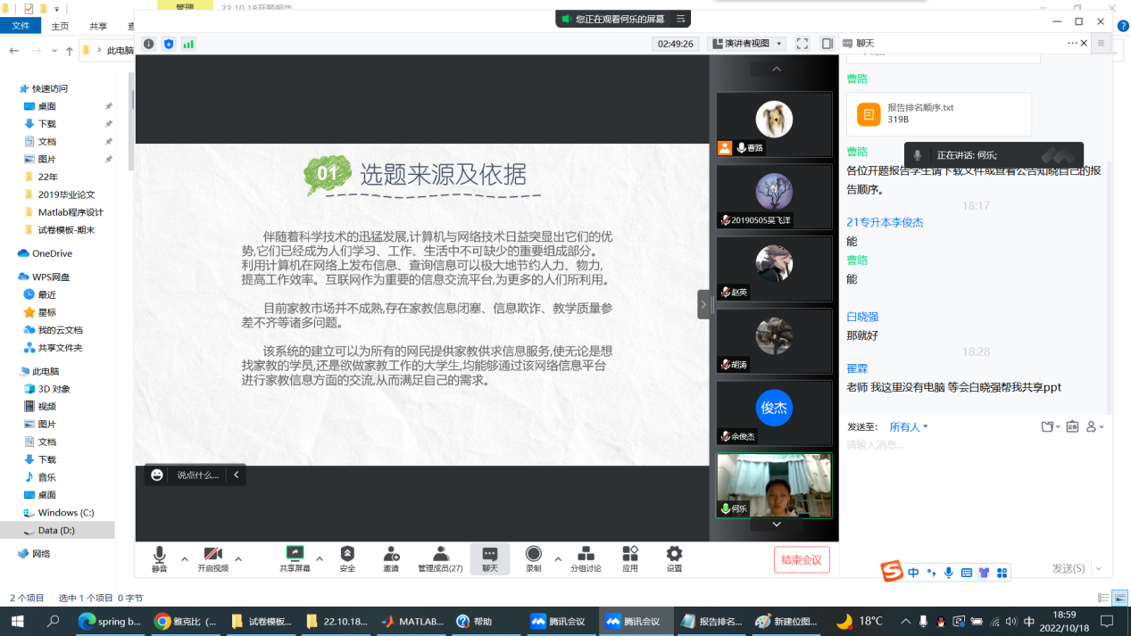 为加强毕业论文(设计)的过程管理,切实抓好毕业论文(设计)质量,10月18日,williamhill威廉希尔中文网站举行2023届本科毕业论文(设计)开题线上答辩会。学院2023届全体本科毕业生参加了此次开题答辩,答辩分为4个小组同步进行。