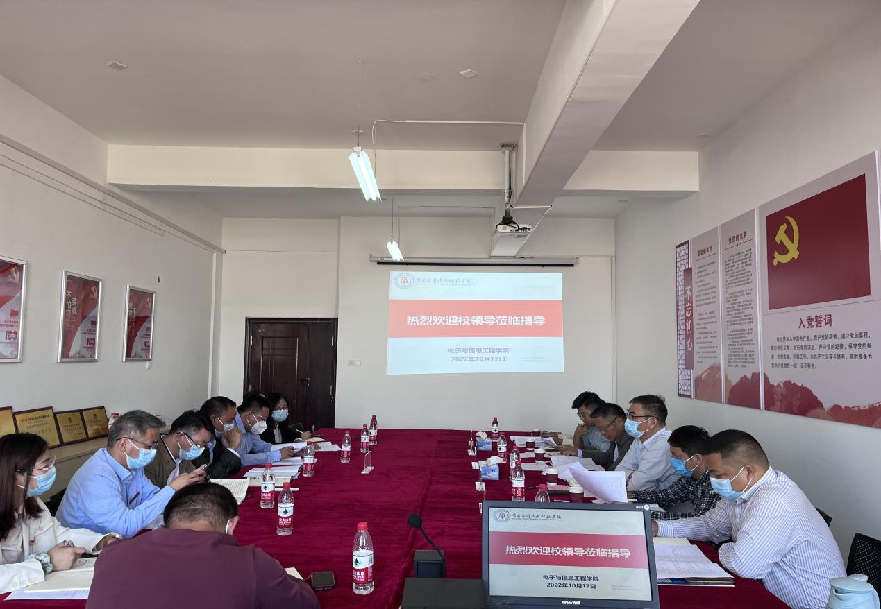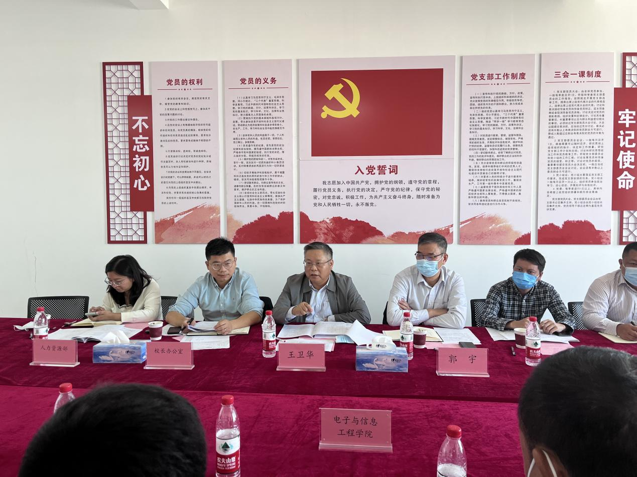 10月17日上午,校长王卫华一行就学校“十四五”规划及综合改革方案学习贯彻落实情况莅临williamhill威廉希尔中文网站开展工作调研。调研座谈会由党委委员、校长助理郭宇主持,校长办公室、教务处、人力资源部、学工处相关负责人,电子与信息工程学院党政领导班子、教研室主任及教师代表参加座谈会。