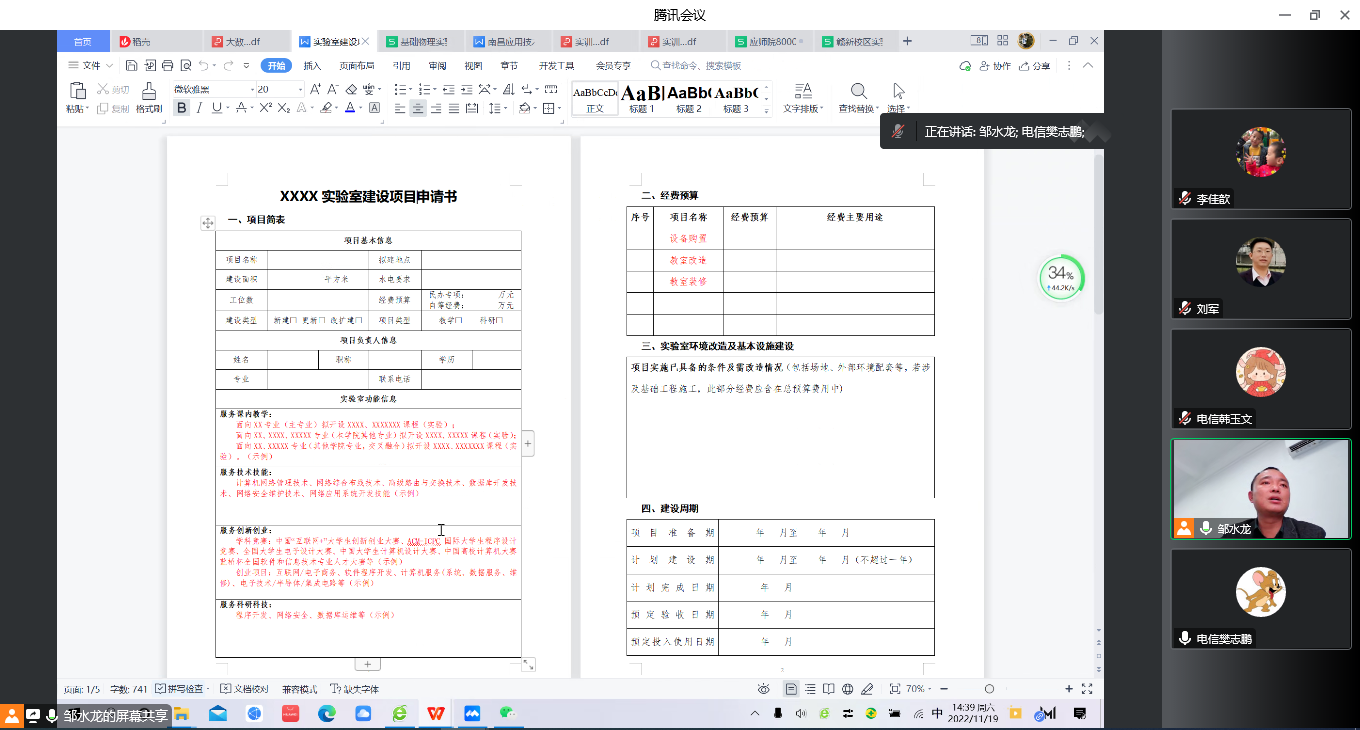 11月19日,williamhill威廉希尔中文网站利用腾讯会议,线上召开新校区实验室建设工作会,教务管理人员、新校区实验室建设负责人参加了此次会议,会议由院长邹水龙主持。