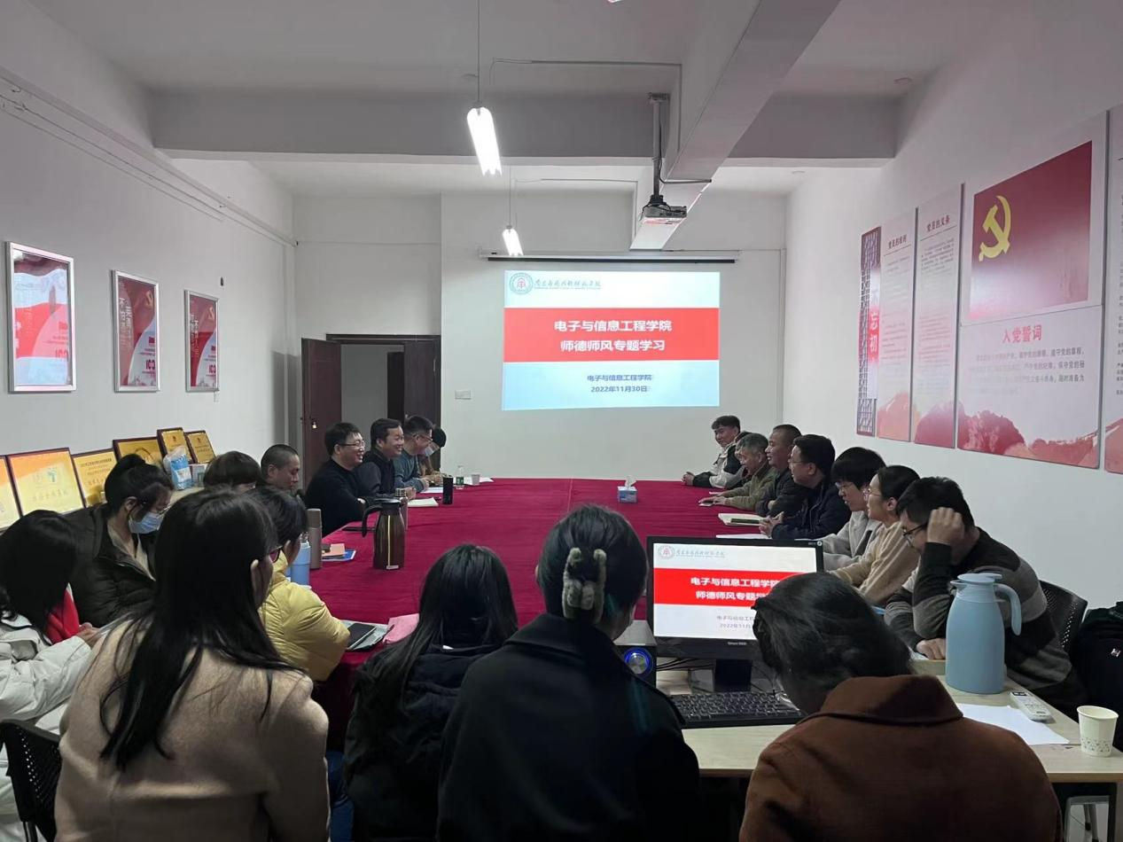 为进一步推进师德师风建设,提高教师职业道德素养。11月30日,williamhill威廉希尔中文网站在1407会议室举行师德师风专题学习活动,全体教职工参加了此次活动,会议由党总支书记龙犇主持。
