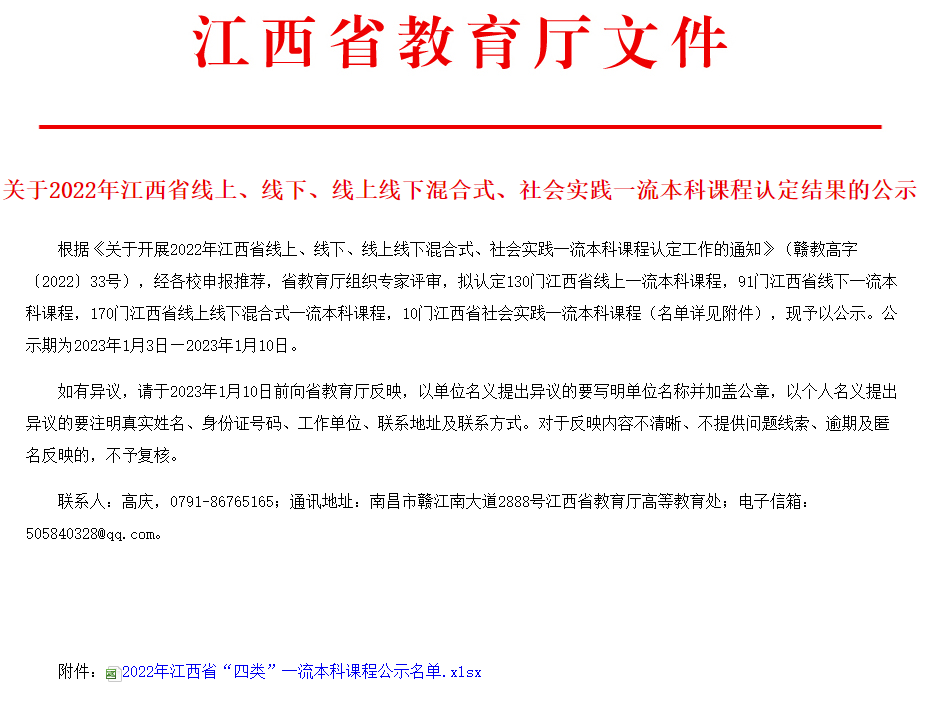 喜报:威廉希尔官网获批2022年江西省线下一流本科课程项目立项
