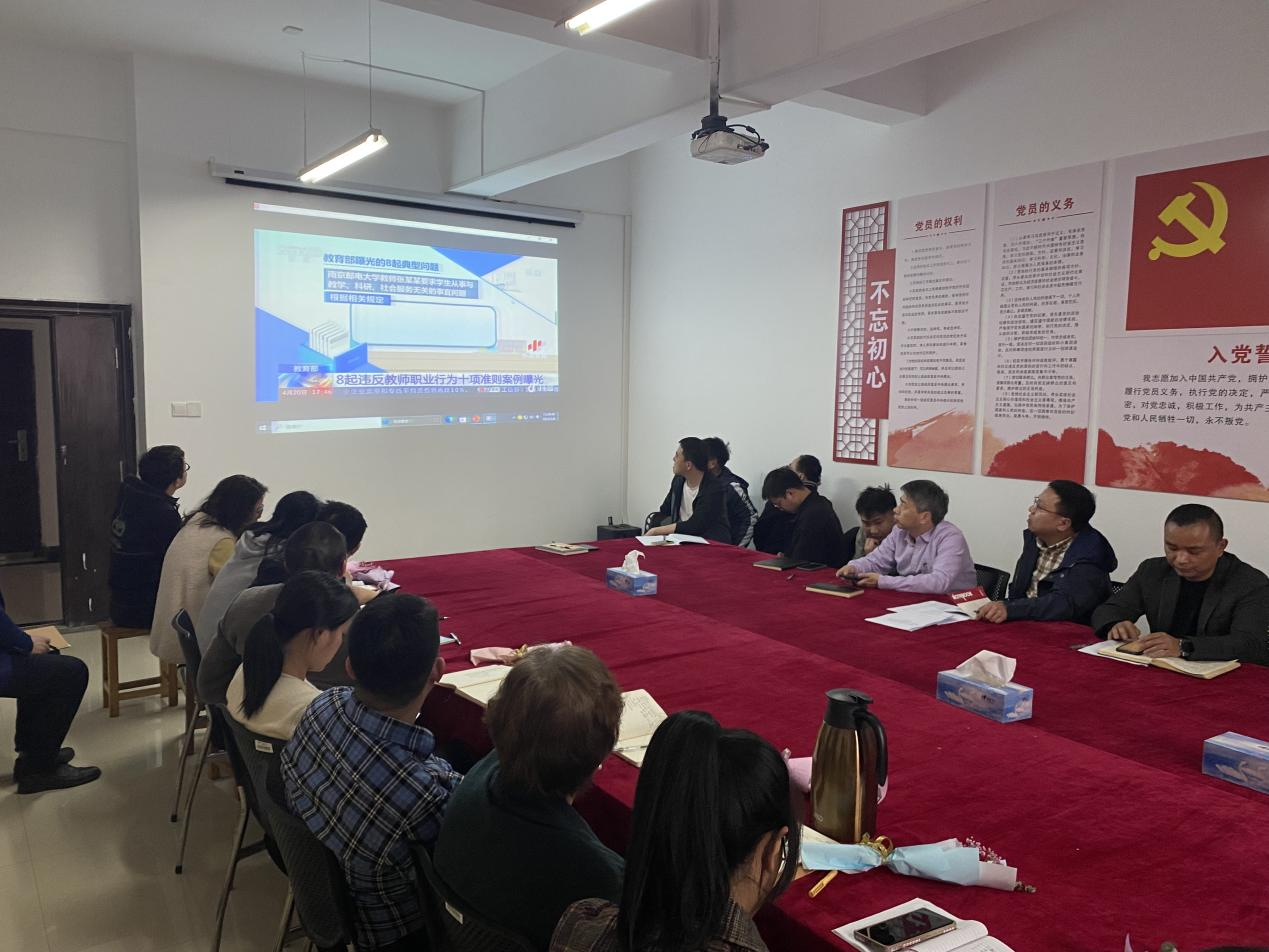 会上,龙犇指出师德师风建设是落实立德树人的根本任务,弘扬新时代高校教师道德风尚的重要途径,要求各位教职工严格落实学校相关要求,引导全院教师自觉按照“四有好老师”和“四个引路人”的具体要求,不断提升自身道德修养和育人能力水平。随后龙犇带领大家一同学习《新时代高校教师职业行为十项准则》,观看教育部曝光的8起违反教师职业行为十项准则案例,通报了近期学校个别教师师德失范行为,他要求与会人员进一步提高思想认识,坚持立德树人,强化规则意识、树牢底线意识,规范从教从业行为。