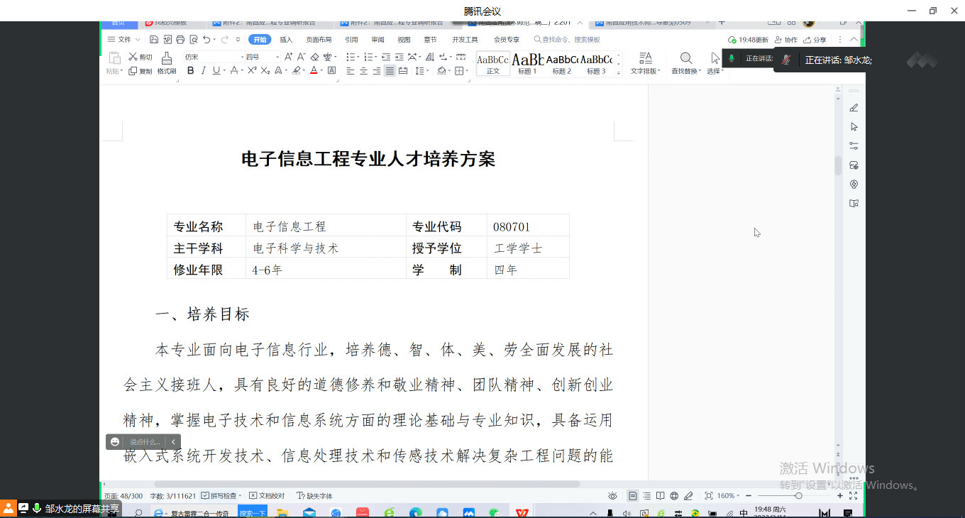 3月11日,williamhill威廉希尔中文网站利用腾讯会议,线上召开2023版本科专业人才培养方案修订工作布置会,教务管理人员、各普通本科专业负责人参加了此次会议,会议由院长邹水龙主持。